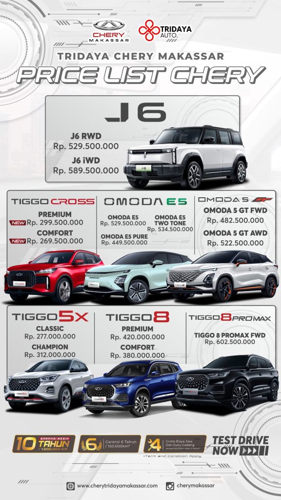 Percayakan Pembelian Mobil di Chery Makassar dan dapatkan Harga Promo, dan Pelayanan Terbaik. DP Murah / Cicilan Serba Ringan / Promo menarik semua ada hanya di Chery Makassar.